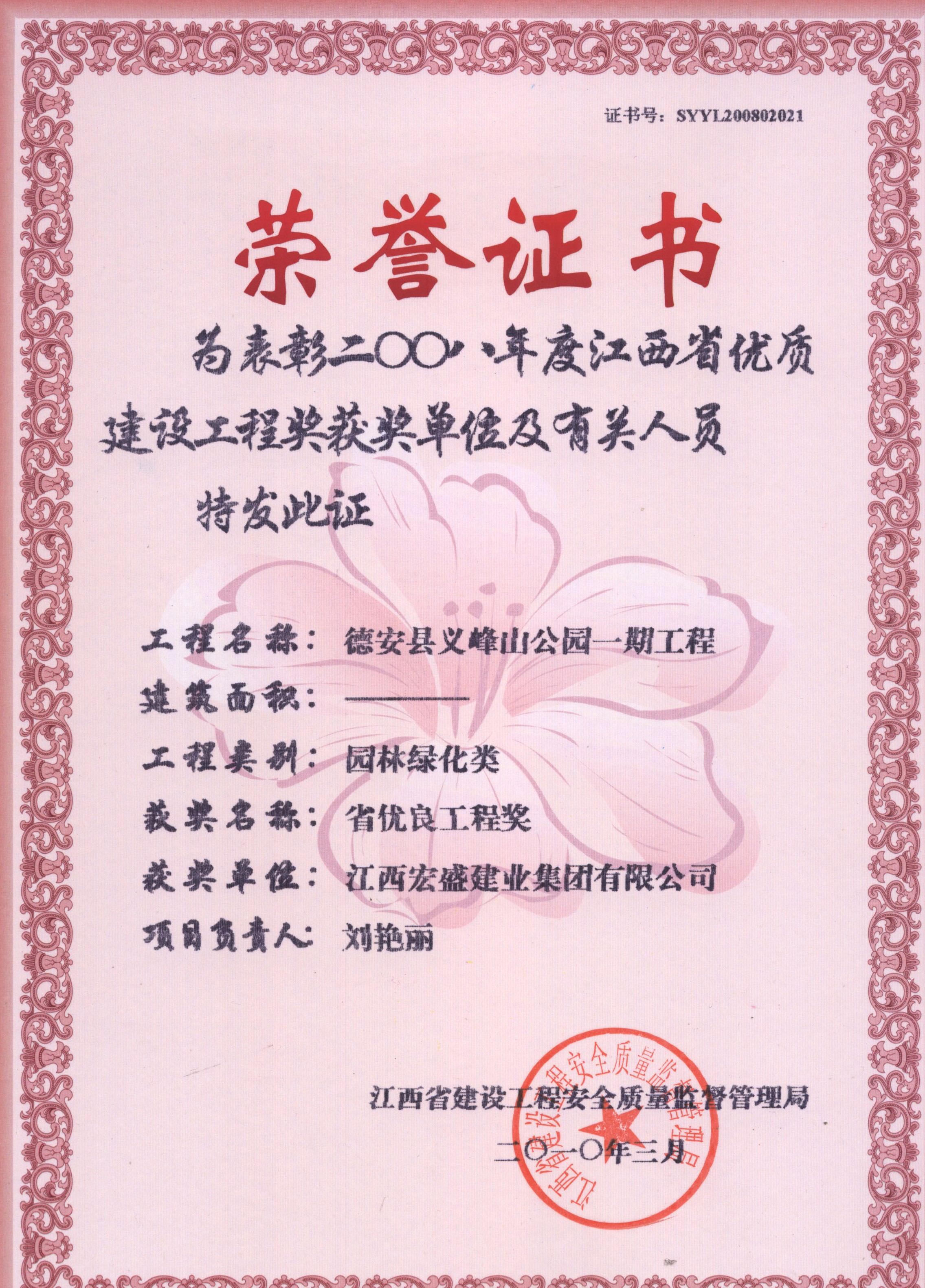 德安縣以峰山公園一期工程 江西省優(yōu)良工程獎