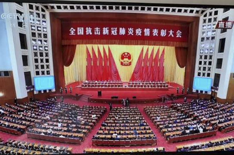 中共中央總書記、國家主席、中央軍委主席習(xí)近平向在抗擊新冠肺炎疫情斗爭中作出杰出貢獻的功勛模范人物頒授勛章獎?wù)虏l(fā)表重要講話。“共和國勛章”獲得者鐘南山、“人民英雄”國家榮譽稱號獲得者張伯禮、張定宇、陳薇四人在列。大會還對全國抗擊新冠肺炎疫情先進個人、先進集體、全國優(yōu)秀共產(chǎn)黨員、全國先進基層黨組織進行表彰。