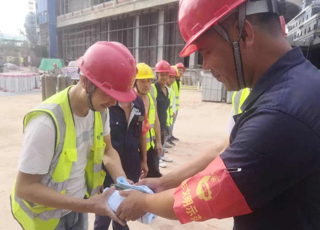 8月5日,集團黨支部副書記、董辦主任金慧一行,帶著集團董事長周金虎的委托和關(guān)懷,精心準備了一大批消暑解乏的慰問品到項目現(xiàn)場走訪慰問宏盛建設(shè)者們。