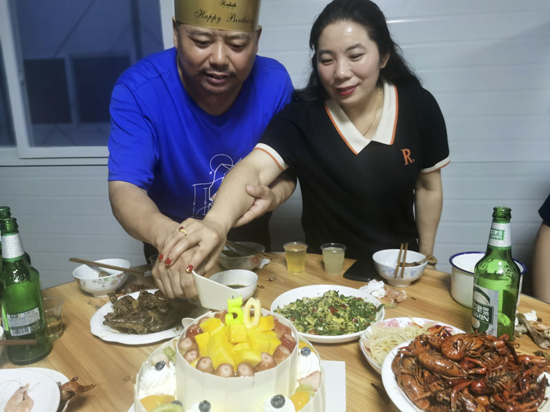 今日的壽星是項目部負責人唐錦江,71年的他08年便進入了公司,資深而年長,早已是導師級的“老人”,因此大家都親切的喚他為“老唐”。作為長期駐扎在項目部的“家長”,辛勞工作之余,與家人更是分隔異地,倍加思念。