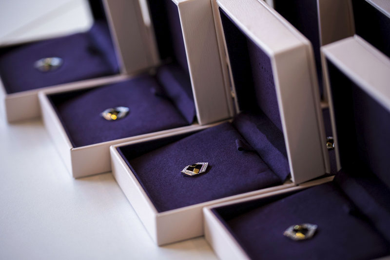 宏盛定制司徽,以2塊黃金+48顆鉆石作為主材質(zhì),以宏盛logo作為司徽樣式。集不菲價(jià)值、深刻寓意、無(wú)上榮譽(yù)于一體。