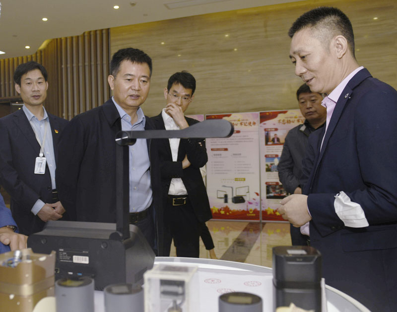 △上饒市委書記馬承祖觀看“章管家-印章智慧管理解決方案”操作演示流程