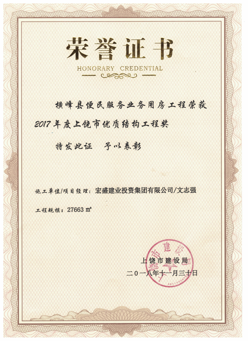 此前,該工程榮獲“2017年度上饒市優(yōu)秀結(jié)構(gòu)工程獎(jiǎng)”
