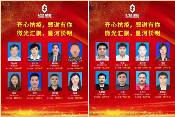 宏盛建業(yè)接令迅即投身上饒市抗擊疫情防控工作,緊急組織60多名優(yōu)秀黨員和骨干組成先鋒突擊隊(duì)日夜搶戰(zhàn),二支先鋒突擊隊(duì)2天2夜超前完成上饒市第二人民醫(yī)院抗擊疫情防控負(fù)壓病房改建。同時,宏盛黨員積極為防疫出力的同時,主動奉獻(xiàn)愛心,集聚善款394200元。