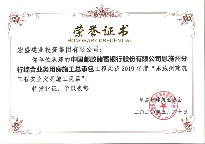從湖北省建設(shè)工程質(zhì)量安全協(xié)會文件(鄂建質(zhì)安協(xié)〔2020〕7號)文件獲悉,宏盛建業(yè)承建的中國郵政儲蓄銀行股份有限公司恩施州分行綜合業(yè)務(wù)用房施工總承包項(xiàng)目,獲評2019-2020年度第二批湖北省建筑工程安全文明施工現(xiàn)場。該項(xiàng)目累獲市優(yōu)省優(yōu),展現(xiàn)項(xiàng)目擔(dān)當(dāng)。