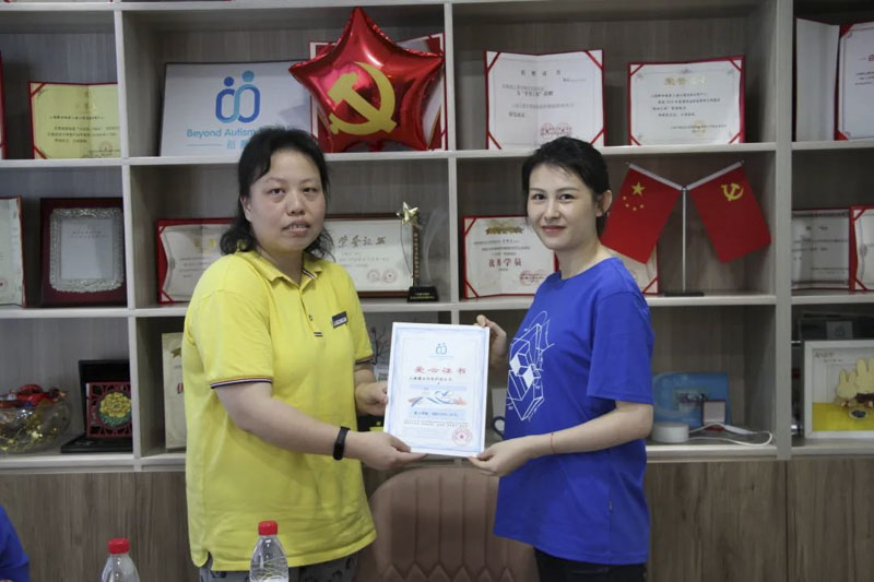 同時(shí),宏盛集團(tuán)發(fā)起全集團(tuán)捐款活動(dòng),我們收到全國(guó)各地分子公司、項(xiàng)目部的愛心捐款,大家紛紛慷慨解囊,為這群特殊的孩子送去溫暖和祝福。宏盛集團(tuán)和上海建業(yè)向上海市慈善基金會(huì)靜安區(qū)代表機(jī)構(gòu)共計(jì)捐贈(zèng)21000元,定向用于上海靜安越量?jī)和闹前l(fā)展訓(xùn)練中心教具項(xiàng)目。