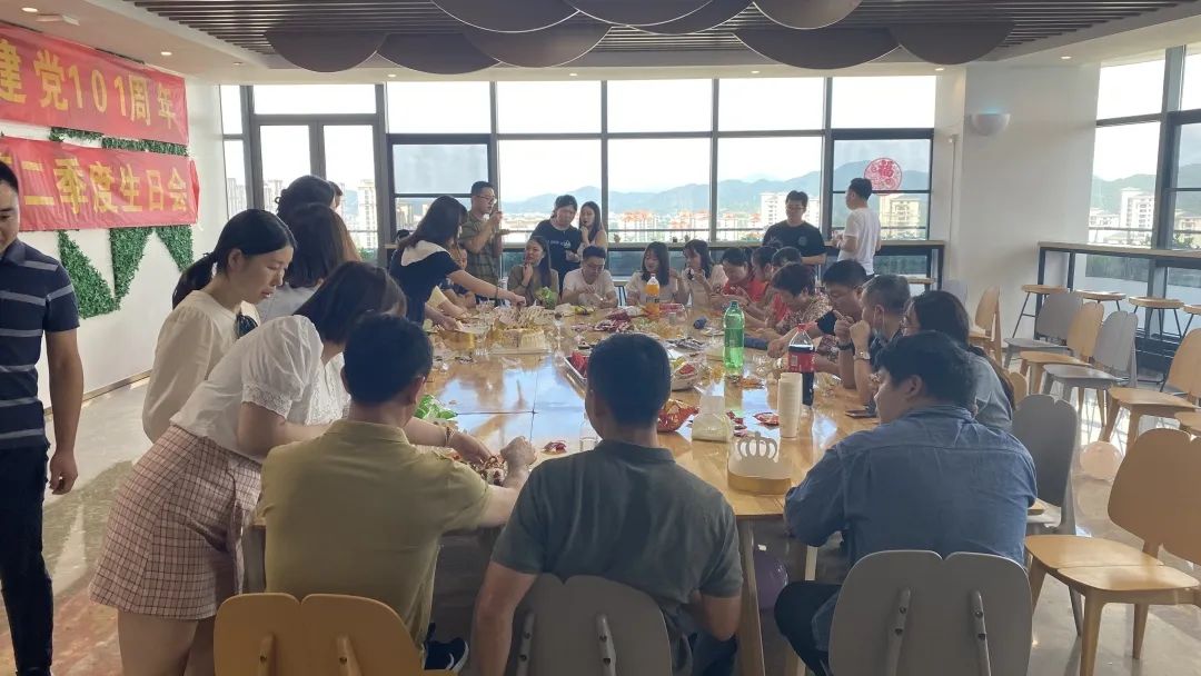 今年7月1日,中國(guó)共產(chǎn)黨成立101周年,在這個(gè)特別的日子里,公司在公司23樓舉辦了2022年第二季度的員工生日會(huì)。員工生日會(huì)的舉辦體現(xiàn)以人為本的管理文化,讓員工們放松了心情,增進(jìn)了員工之間的認(rèn)識(shí)和交流,融洽了彼此間的關(guān)系,切實(shí)感受到了公司的關(guān)懷,增強(qiáng)了員工的歸屬感,極大地激發(fā)了員工的工作熱情,使員工更積極主動(dòng)地投入到工作中去。再次祝壽星們生日快樂(lè),相聚相伴,相約同行!