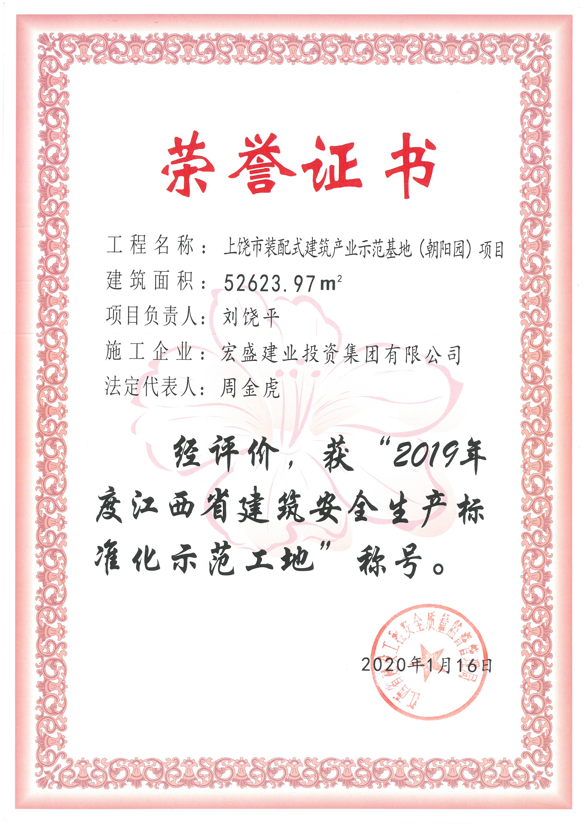 2019年度江西省建筑安全生產(chǎn)標(biāo)準(zhǔn)化示范工地