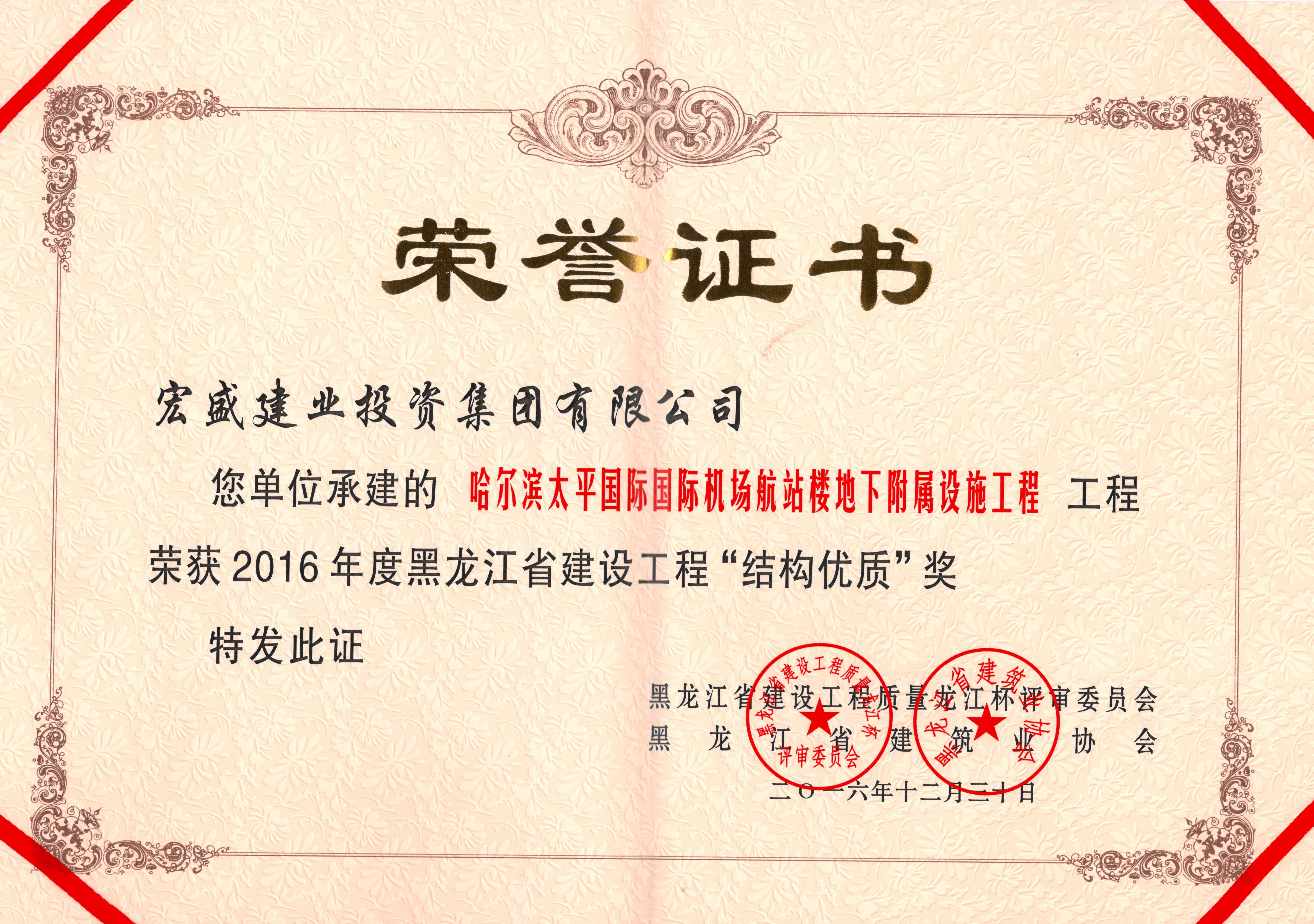 2016年度黑龍江省 建設(shè)工程質(zhì)量優(yōu)質(zhì)結(jié)構(gòu)