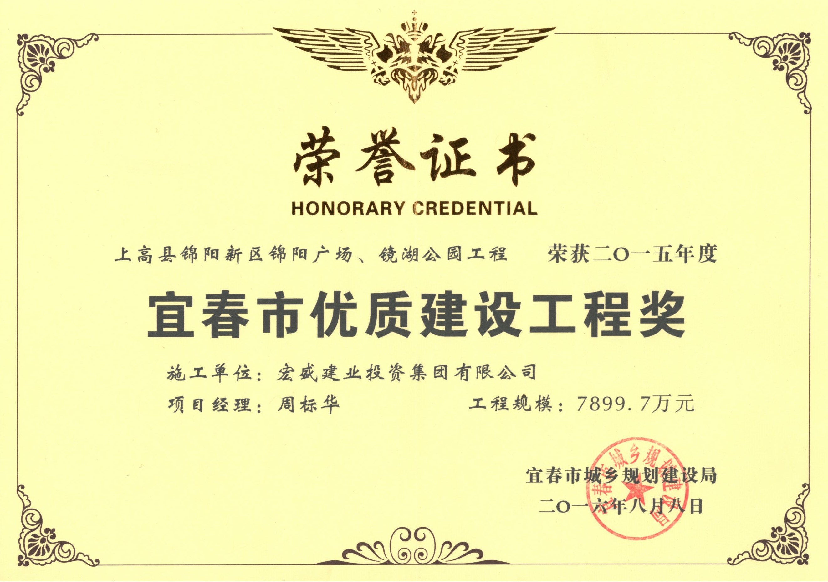 2015年度宜春市優(yōu)質(zhì)建設(shè)工程獎
