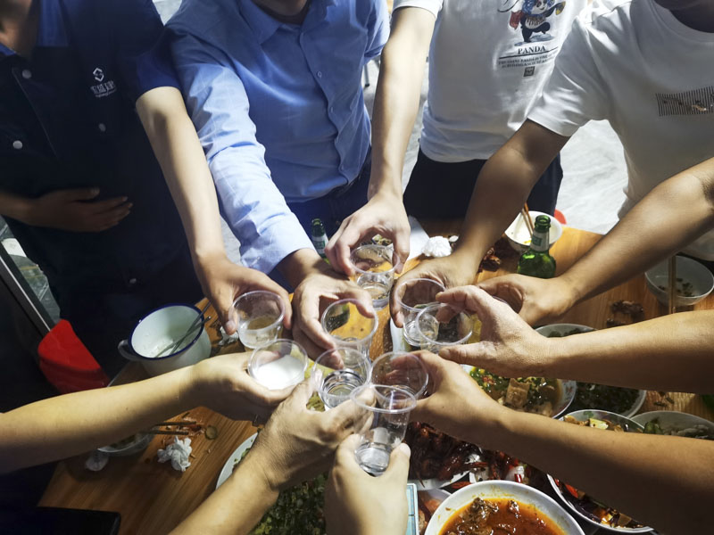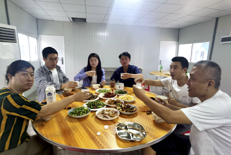 工作忙碌了整日,莫不疲勞、饑餓。下午6點(diǎn)整,忙碌了大半天的項(xiàng)目部餐廳一切準(zhǔn)備就緒,傳來(lái)了開(kāi)飯的消息,于是乎大家紛紛離開(kāi)辦公區(qū)域匯聚至餐廳入席就餐。一桌豐盛的家常菜配以薄酒,組成了項(xiàng)目部生日會(huì)活動(dòng)溫暖的開(kāi)端。