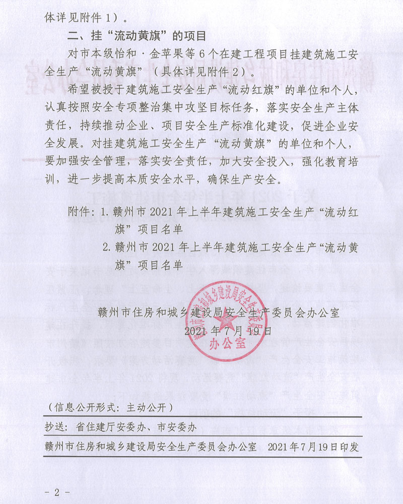 落實安全責任,推動安全發(fā)展。宏盛建業(yè)秉著鑄精品工程,創(chuàng)美好生活的核心價值觀,同時在集團內(nèi)部不斷開展多種形式的安全生產(chǎn)活動,提高集團整體安全生產(chǎn)管理水平。近日,從贛市建安辦文件[2021]14號文件《關(guān)于2021年上半年全市建筑施工安全生產(chǎn)“流動紅旗”競賽結(jié)果的通報》獲悉,集團建設(shè)項目贛州經(jīng)開區(qū)文化藝術(shù)中心建設(shè)項目(A、C地塊)榮獲贛州市2021年上半年建筑施工安全生產(chǎn)“流動紅旗”獎項。