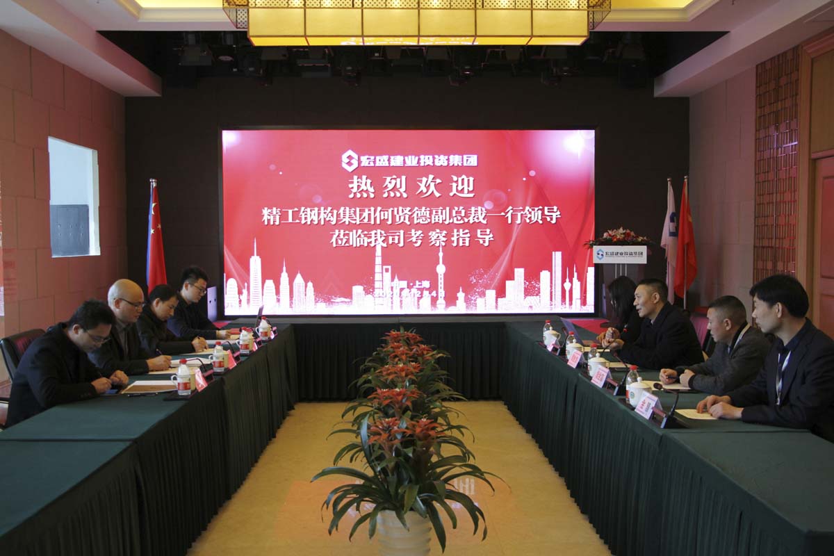 12月4日,長(zhǎng)江精工鋼構(gòu)集團(tuán)副總裁何賢德一行到宏盛建業(yè)上??偛靠疾旖涣?,集團(tuán)董事長(zhǎng)周金虎陪同座談。雙方就攜手助推裝配式產(chǎn)業(yè)發(fā)展達(dá)成合作意向,共商未來(lái)發(fā)展布局規(guī)劃。