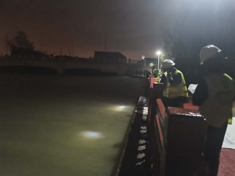 搶險(xiǎn)支援隊(duì)到達(dá)醫(yī)都醫(yī)院項(xiàng)目部時(shí),臨河漲水很?chē)?yán)重水位已上升了近八十厘米!立馬分組分批在現(xiàn)場(chǎng)輪流查看,巡查水位并做好登記,確保抽水泵的正常運(yùn)轉(zhuǎn)。