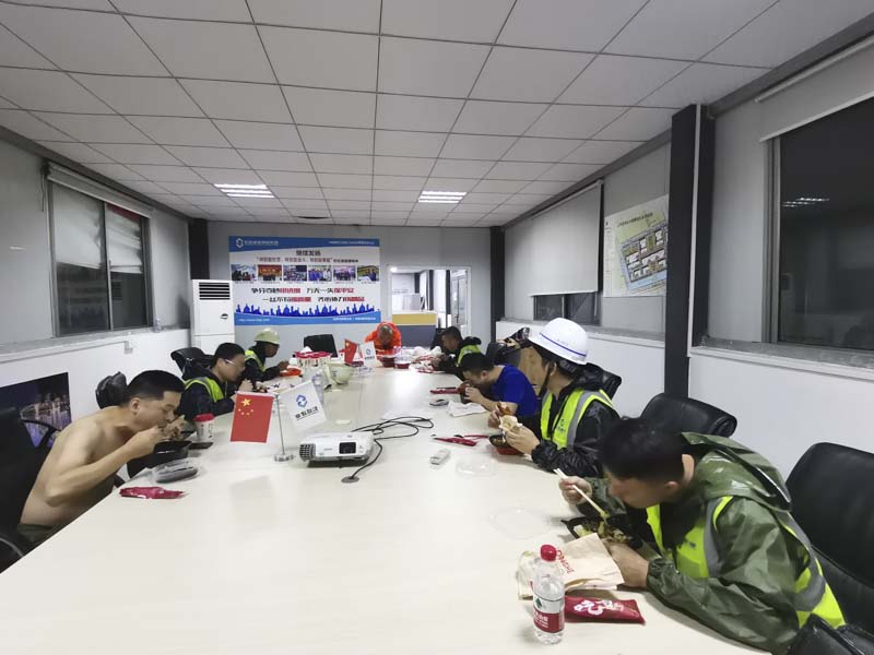 汗水雨水夾雜在一起,部分員工的衣服已經(jīng)全濕。一到現(xiàn)場(chǎng)就先開(kāi)始了展開(kāi)工作,直至深夜大家才吃上晚餐。據(jù)了解,宏盛醫(yī)都項(xiàng)目搶險(xiǎn)支援隊(duì)從25日下午開(kāi)始,一直忙到27日凌晨三點(diǎn),大家始終堅(jiān)守在抗擊臺(tái)風(fēng)的第一線,連續(xù)奮戰(zhàn)2天2夜,安全優(yōu)質(zhì)地完成了抗擊臺(tái)風(fēng)的任務(wù),充分彰顯出宏盛人“特別能吃苦、特別能戰(zhàn)斗、特別能奉獻(xiàn)”的精神特質(zhì)。