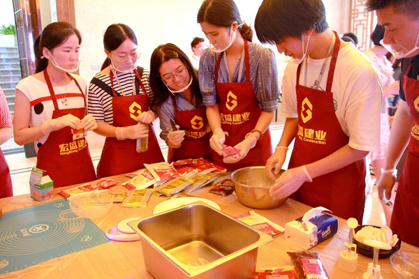 中秋,飽含著濃濃中華民族之情,根系著煌煌中華傳統(tǒng)文化之脈,承載著一個民族共同的文化記憶與情感認(rèn)同。 中秋佳節(jié)之際,宏盛建業(yè)向大家發(fā)來節(jié)日慰問。 9月12日,宏盛建業(yè)開展了“承包你的中秋味道”創(chuàng)意DIY手制中秋月餅活動,本次活動旨在激發(fā)大家的創(chuàng)新精神,弘揚宏盛建業(yè)“鑄精品工程,創(chuàng)美好生活”的核心價值觀。 揉面粉,搟餅皮,調(diào)餡料,壓模型……每道制作工藝都展現(xiàn)著大家對“精致”的追求。 活動中,大家各顯身手,以制作月餅為媒介,把天馬行空的想法變成現(xiàn)實。小小的月餅,凝練著宏盛建業(yè)創(chuàng)美好生活的核心價值觀,貫徹著宏盛建業(yè)“誠信、穩(wěn)健、創(chuàng)新、奉獻”的宗旨,一個個精美絕倫的手工月餅,在大家的手中“綻放”。 紙上得來終覺淺,絕知此事要躬行,通過本次DIY月餅制作活動,大家深切體會到創(chuàng)意、創(chuàng)新、創(chuàng)造的魅力。 月餅制作結(jié)束后,大家還采用發(fā)朋友圈集贊的方式,評選出了宏盛“最佳人氣月餅獎”。