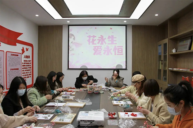 為慶?!叭恕眹H婦女節(jié)的到來,豐富女同事們的業(yè)余文化生活,集團于3月8日為宏盛女同事們舉辦了一場“花永生 愛永恒”永生花制作活動,為廣大女性創(chuàng)造了“與花共舞”“與花為伴“的美好時光。